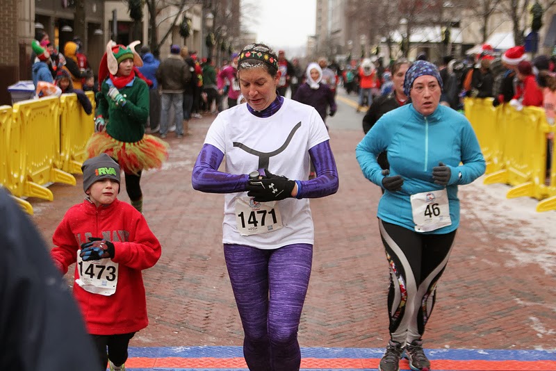 I did the Run with Santa 5K with the boys this morning. The weather had promised to be interesting with a threat of an ice storm or snow and temperatures below 30. Those temperatures don't bother me, but the kids have never really raced when it was that cold before.